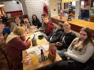 Завершением дня стал ужин в пабе. Несмотря на отсутствие брони и большое количество посетителей, нам удалось найти место для всей группы. Это стало символичным итогом дня: несмотря на все трудности и неопределённости, нам постоянно удавалось находить решения.