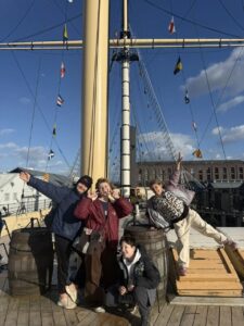 Вторая часть дня стала ещё интереснее. Сначала мы отправились пешком, затем на поезде добрались до Бристоля. По прибытии мы продолжили путь уже по городу, постепенно знакомясь с его архитектурой и атмосферой: мы видели разные улицы, красивые дома и наблюдали, как устроена городская среда. Двигаясь в сторону набережной, мы вышли к Бристольской марине, где смогли почувствовать более «открытую» часть города, связанную с водой и историей порта.